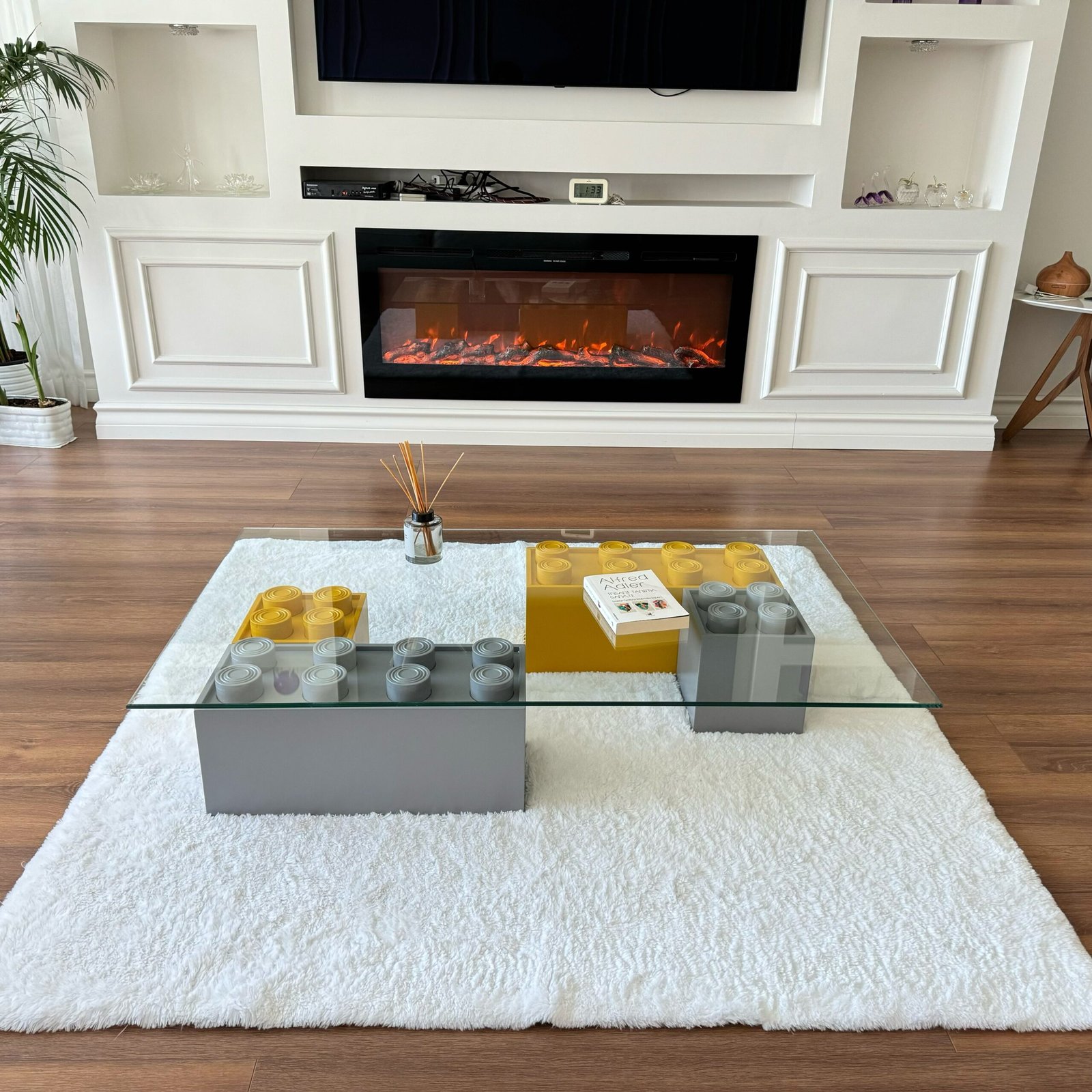 • Boyutlar: 110×70 cm (cam yüzey), 20x20x20 cm ve 20x50x20 cm (bloklar)